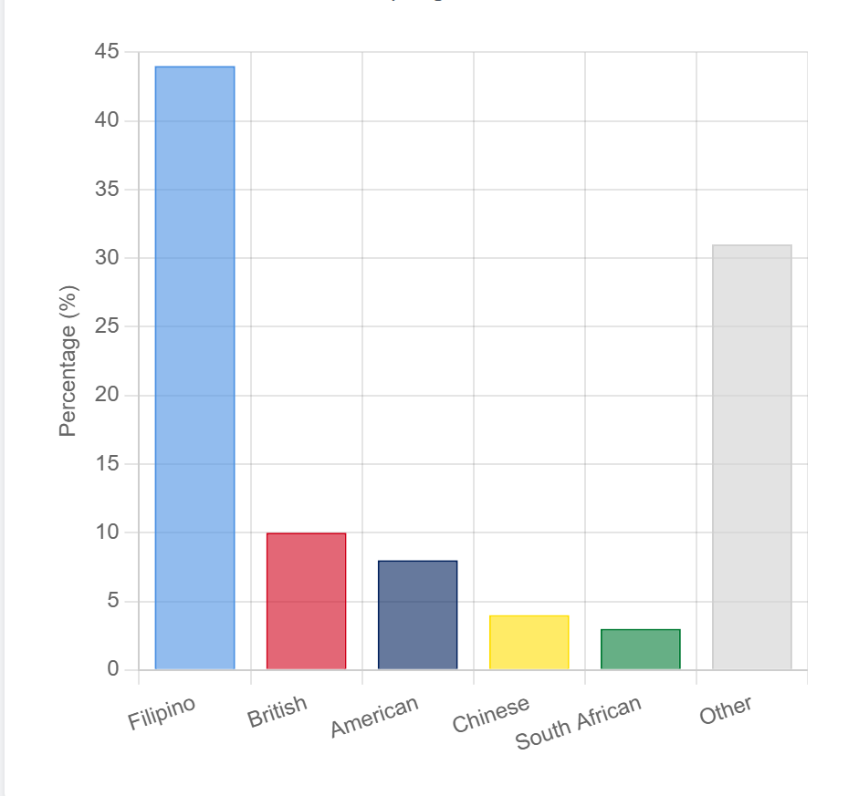 We source talented students from diverse backgrounds. The chart below shows a typical distribution of nationalities from our programs.